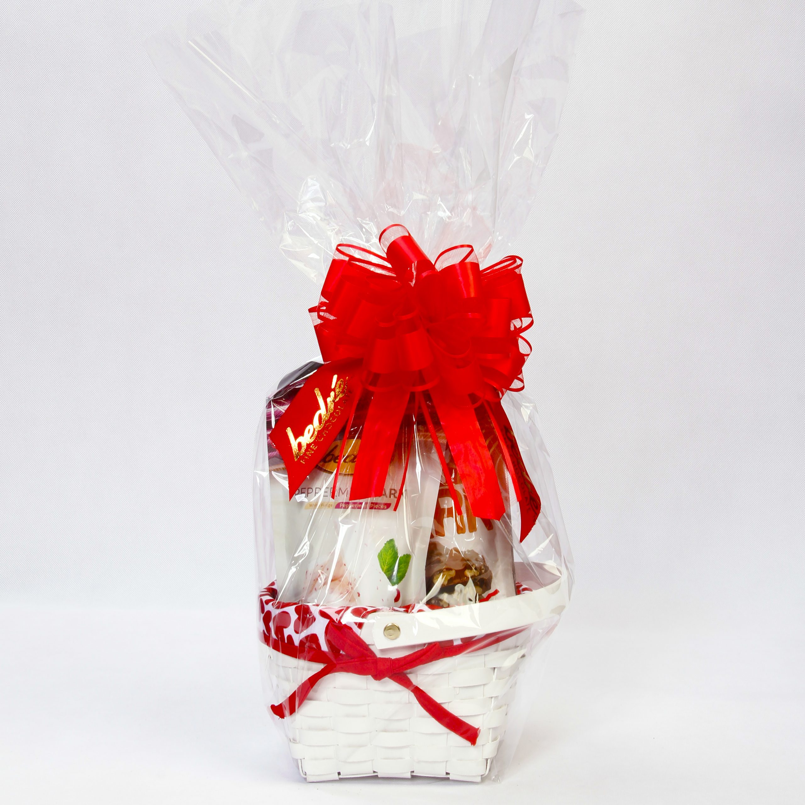 Small classy white basket with beautiful red heart lining.
